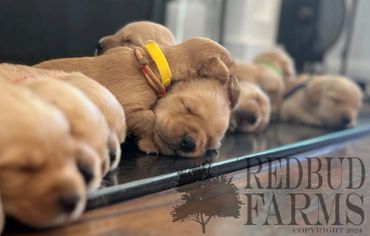 Mabel welcomed 10 new puppies in June. We have 5 girls and 5 boys. Email us at redbudfarmstn@gmail.com or give us a call or text for more info.